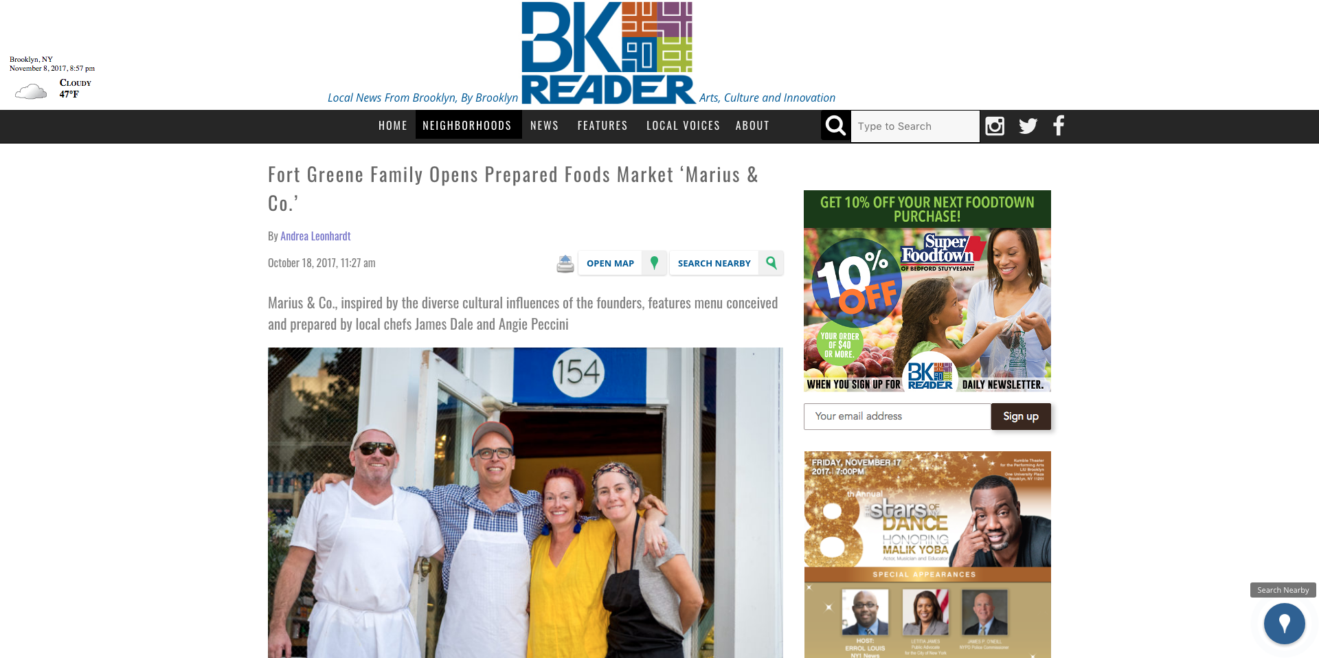 Located in Brooklyn, Marius & Co. is a neighborhood market of prepared foods and specialty items that serves the local community. It was founded in 2017 by Mitro Valsamis, Kimberly Valsamis, Agata Podedworny, and James Dale, who is one of the market’s chefs along with Angie Peccini. Named for Mitro’s father, Marius & Co. is known for specialty items including Captain Smolders smoked salmon and kedgeree — an Indian dish of curry, rice, and fish; an eclectic selection of cheese and charcuterie; such comfort food favorites as rotisserie chicken and homemade macaroni and cheese; and daily specials inspired by the cultural influencers of the chefs and owners.